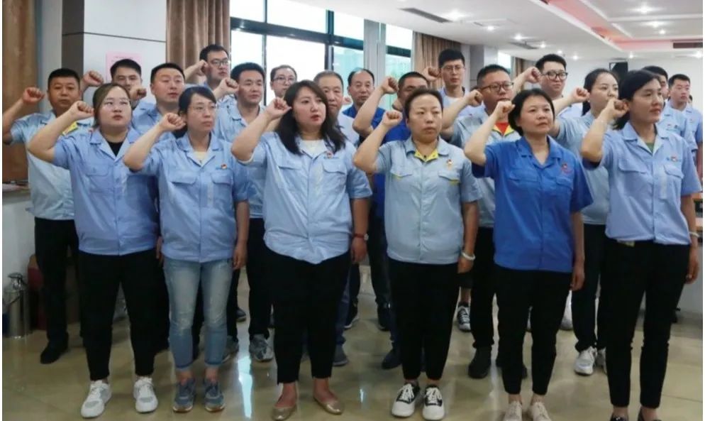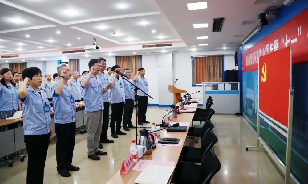 面對(duì)鮮紅的中國(guó)共產(chǎn)黨黨旗,嚴(yán)鑒鉑書(shū)記帶領(lǐng)班子成員、新發(fā)展黨員、全體參會(huì)黨員握舉右拳,鄭重宣誓,重溫入黨誓詞。